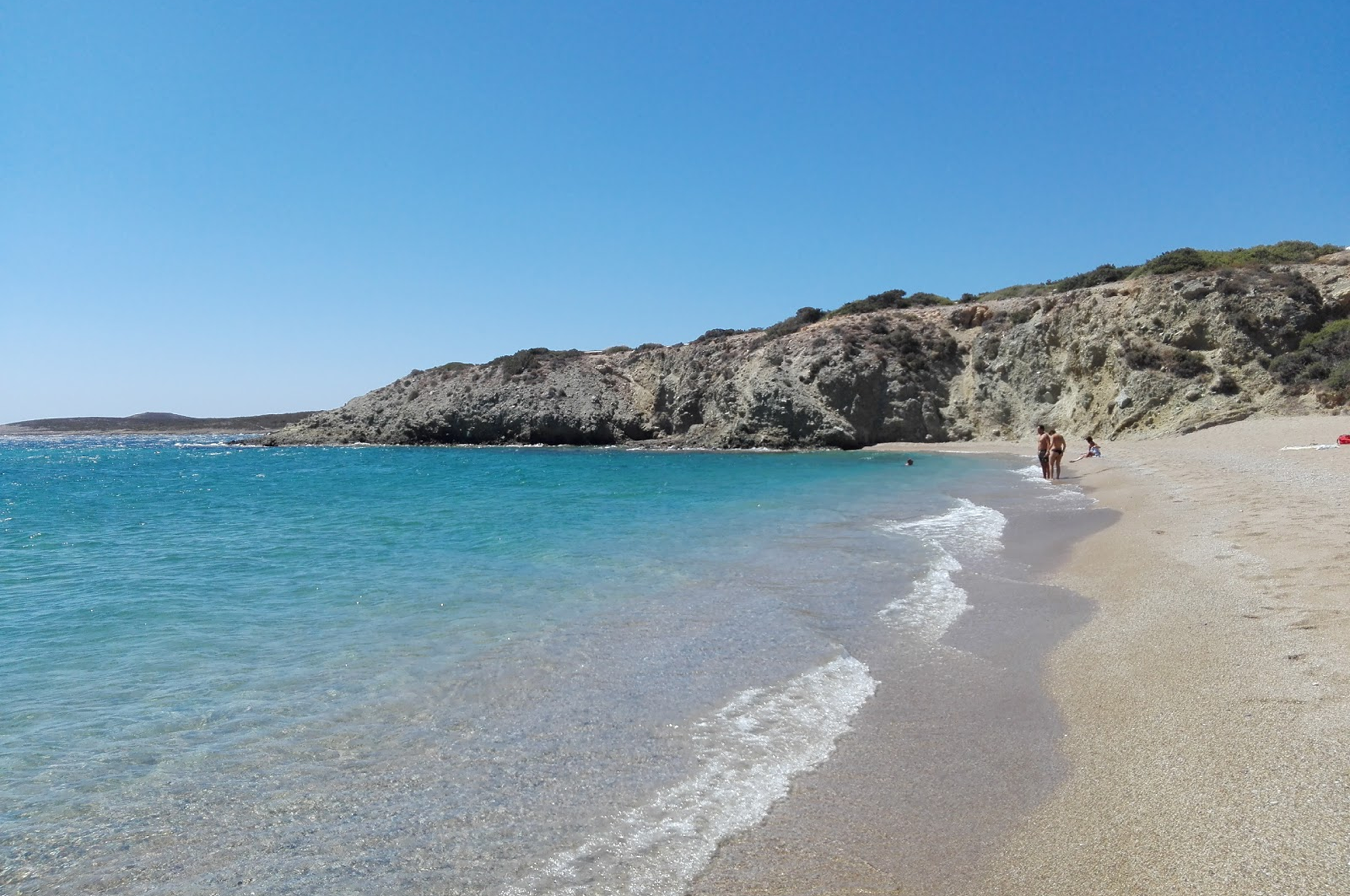 If there’s one beach that consistently draws both locals and visitors, it’s Soros. Set along the southeastern coast of Antiparos, this wide stretch of sand and shallow water is made for long days that pass without effort. The shore here is open and sun-drenched, yet never feels crowded, even in high season.