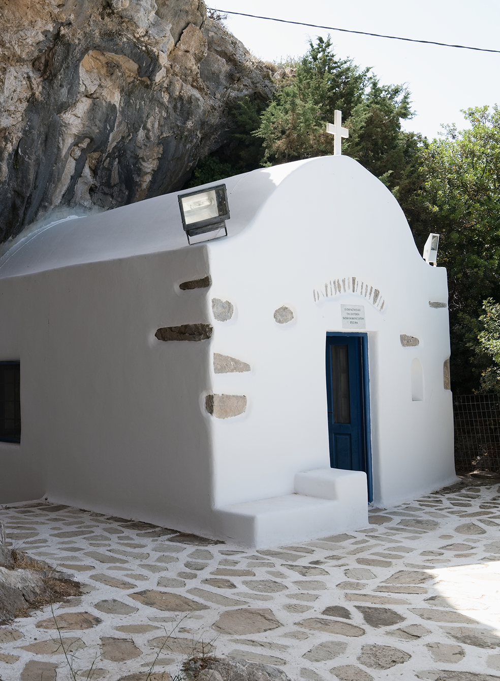 To reach the Cave of Antiparos from TWWO, it’s a scenic 20-minute drive inland through olive-dotted terrain and whitewashed villages. Once there, the entrance is marked by a small church, Agios Ioannis Spiliotis, and the site offers parking and a modest ticket booth. Entry is self-guided, though early morning visits offer a quieter, more immersive experience.